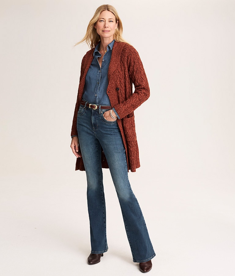 a soft, season-perfect corduroy version of our flare jeans. just as chic, extra cozy. available in Curvy Fit.